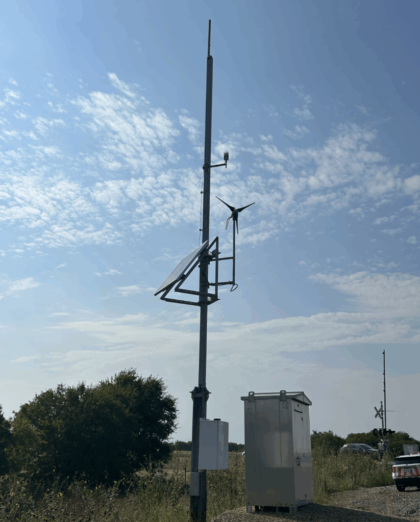 BNSF on Oct. 3 reported deploying its first solar- and wind-powered weather station in Haslet, Tex. “The station runs without commercial power and supports real-time weather monitoring across the rail network,” the railroad announced via social media. “It records wind speed, temperature, humidity, and other key metrics, helping dispatchers respond to changing conditions. Thank you to all the teams involved in deploying this innovative weather station!”