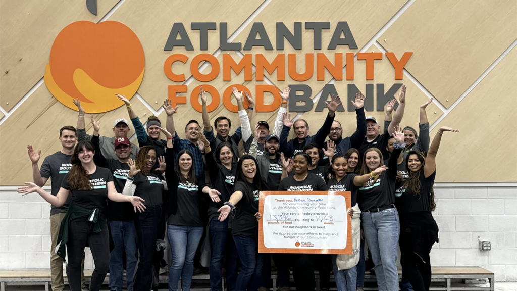 • The Labor Relations, Human Resources, and Corporate Communications departments, along with the Volunteers Employee Resource Group (ERG) at NS, volunteered on separate days at the Atlanta (Ga.) Community Food Bank (ACFB). Together, they sorted and packaged more than 68,000 pounds of food, which represents approximately 57,000 meals. To build on this, NS hosted a food drive at its Atlanta headquarters to support ACFB.