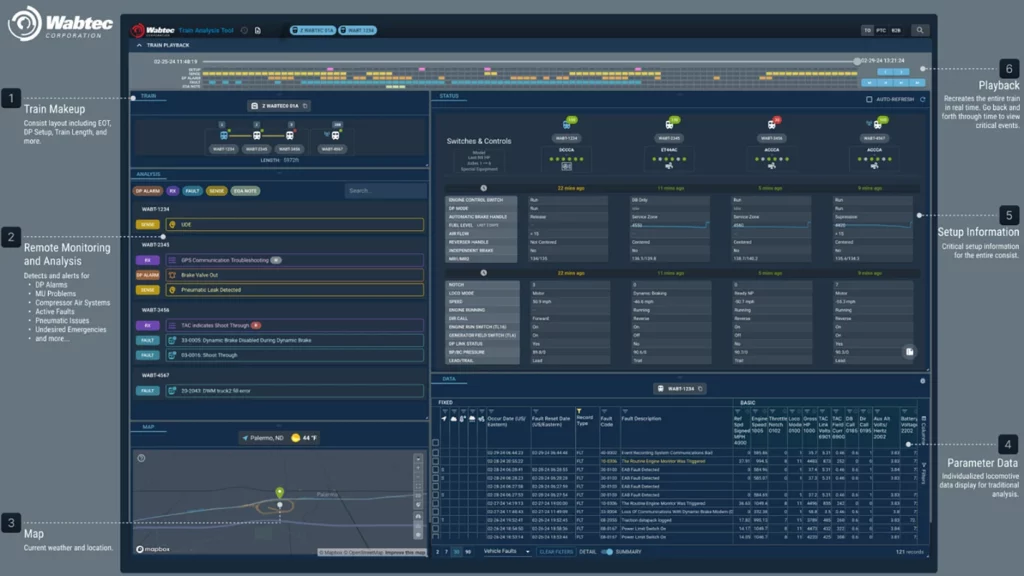 “The future is bright for the Train Analysis Tool as it evolves Train Level Diagnostics,” Wabtec notes. “The ability to monitor the entire train and pinpoint problems for crew or responder resolution results in service interruption reduction opportunities such as UDE (undesired emergency brake application) detection and prevention.”