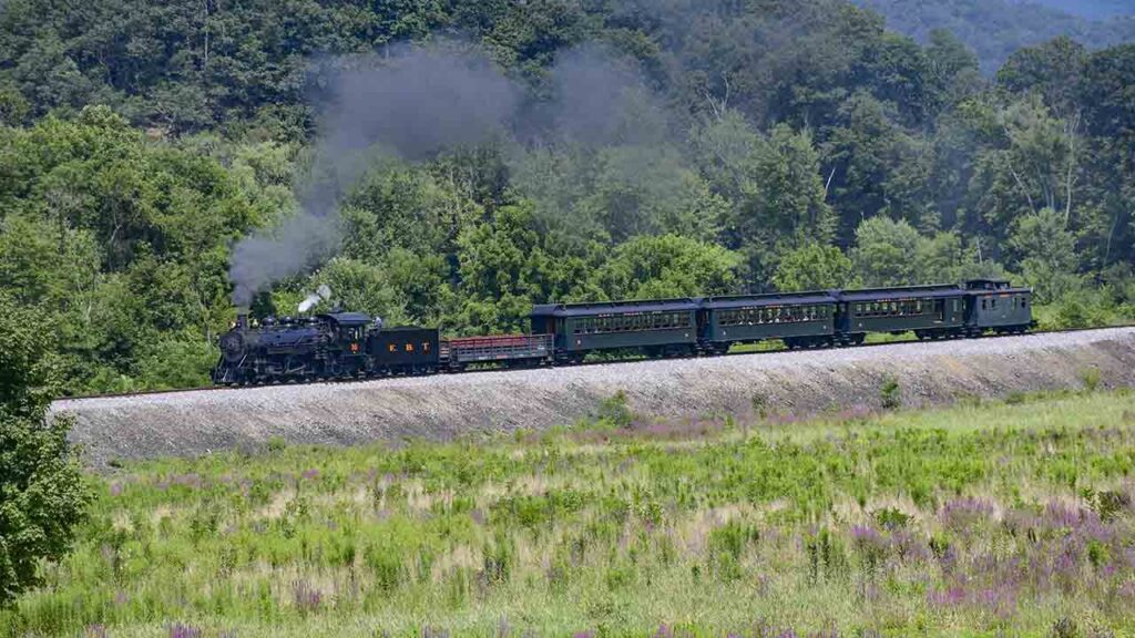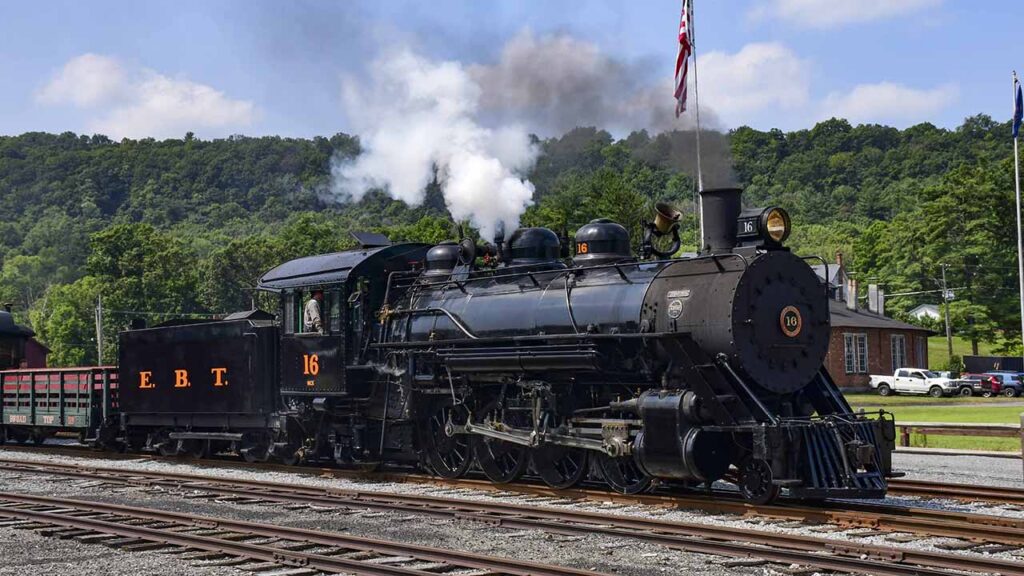 An unsung partner is the volunteer-staffed Rockhill Trolley Museum, which offers rides on a two-mile electrified standard-gauge line laid on a portion of EBT’s former Shade Gap Branch. There’s a good bit of cross-pollination of labor and skills, with many of the trolley museum members doubling on either the Foundation staff or Friends volunteer work. The railroad and the museum loan each other tools and equipment, and cooperate with joint ticketing and coordinated schedules.