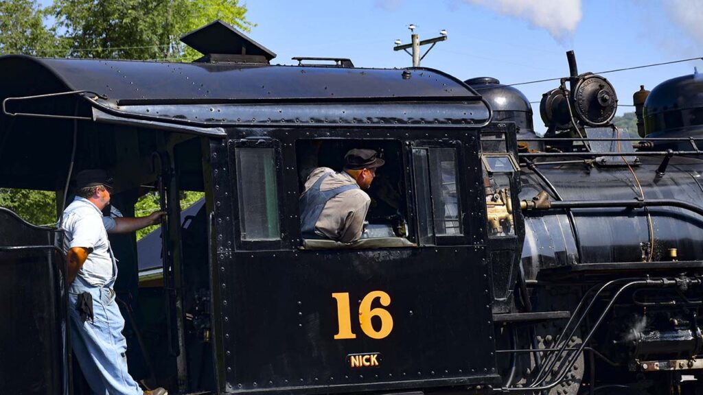 A second reason for the celebration is the return of No. 16, which was restored to operation in 2023 and ran flawlessly that season, but was sidelined intermittently in 2024 and 2025 for maintenance and inspections. Work included partial or complete replacement of leading and trailing trucks and running gear, including driving boxes, brasses, hub liners, axles, and crank pins, according to Master Mechanic Dave Domitrovich. Hidden old imperfections in material surfaced during the first season, requiring remediation that wasn’t obvious during the initial restoration.