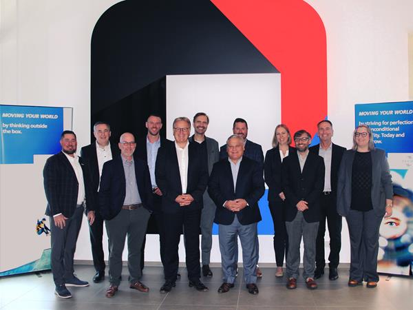 Stefan Fuchs, Chairman of the Executive Board of FUCHS SE, and John Kasel, President and CEO, L.B. Foster Company alongside their management teams at the FUCHS main office in Mannheim, Germany.