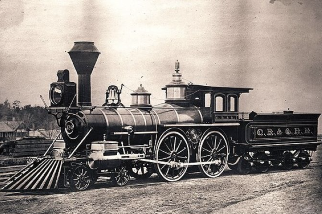 CB&Q locomotive circa 1850s. Photo credit: DeGolyer Library, Southern Methodist University. (Caption and Photograph Courtesy of BNSF)