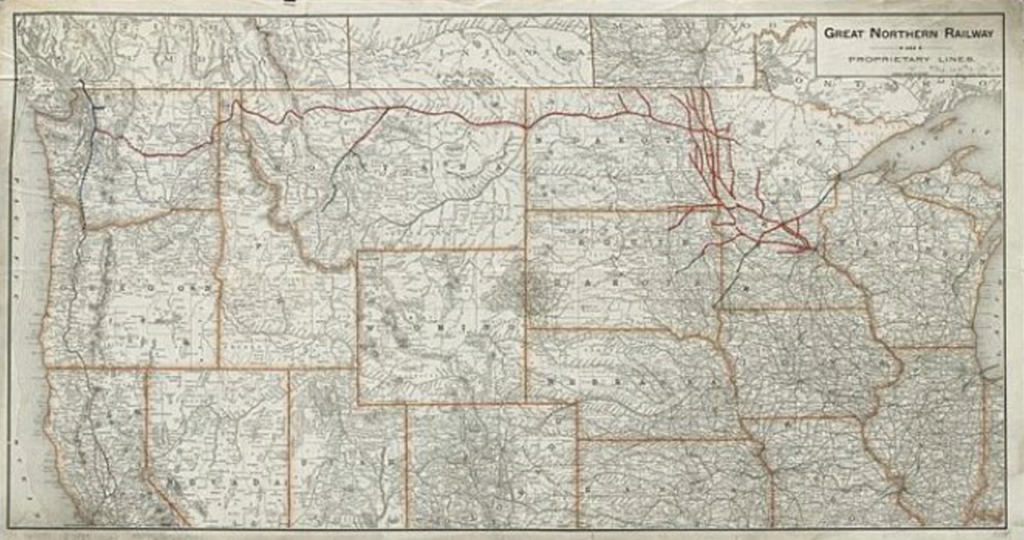 Great Northern map circa 1889. (Caption and Photograph Courtesy of BNSF)