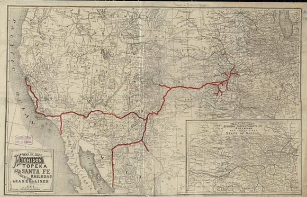 ATSF map circa 1888 including its connections. (Caption and Photograph Courtesy of BNSF)