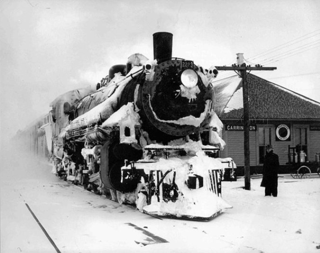 A NP locomotive approaching Carrington, N.Dak. (Caption and Photograph Courtesy of BNSF)