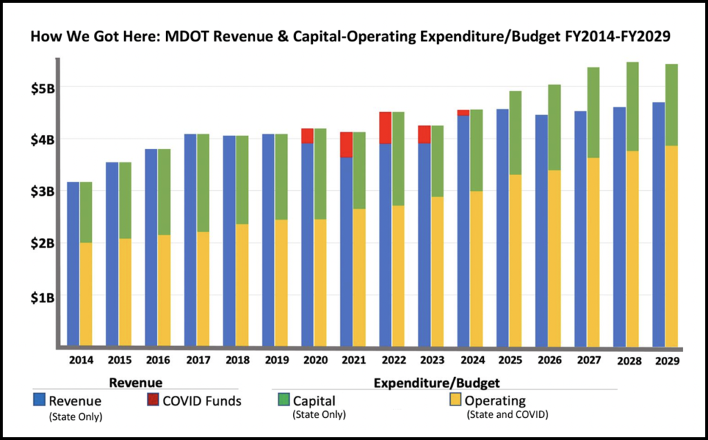 “Families all across Maryland are still feeling the effects of inflation and making decisions and sacrifices to live within their means and balance their household budgets,” MDOT Secretary Paul J. Wiedefeld said. “It’s vital that state government does the same. This is not a new problem for our state. In 2020, the Department of Legislative Services identified that Maryland’s transportation program had a structural issue with operating costs increasing faster than overall revenues. Since 2020, these issues have been exacerbated by historic inflation impacting labor and materials costs, depleted COVID-19 relief funding, and the gradual decline of transportation’s largest revenue source–motor fuel tax revenue.