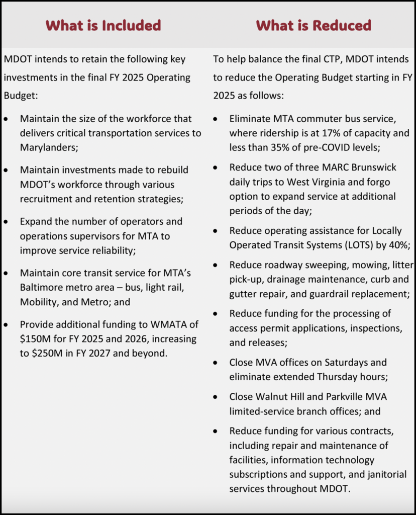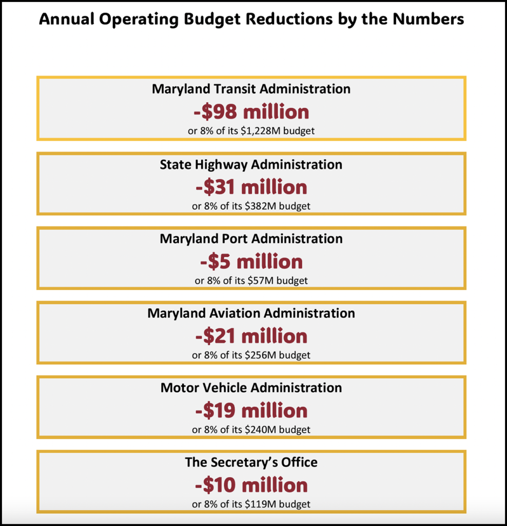 MDOT noted that the reductions are “targeted to limit the overall impact on Marylanders and will not jeopardize safety or key economic investments.”