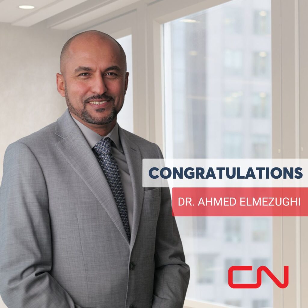CN recently congratulated, via social media, Dr. Ahmed Elmezughi, the Class I’s Chief Medical Officer, on his appointment to the CCOHS Council of Governors.
