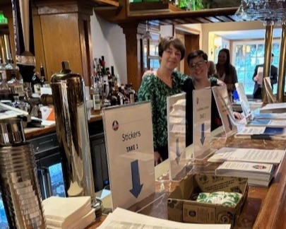 ASLRRA staff members Amy Krouse and Crystal Gitchell helped distribute schedules and other materials to Railroad Day on Capitol Hill participants during breakfast and materials pickup at the Monocle Restaurant. (ASLRRA photo)
