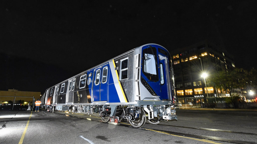 The New York Metropolitan Transportation Authority (MTA) on Oct. 18 rolled out a five-car set of “standard” (non-open-gangway) Kawasaki R211S rapid transit cars for service on MTA Staten Island Railway (SIR) beginning in early 2024. The carset is part of a 535-car base order that includes 440 R211A standard cars, 75 SIR R211S cars and 20 R211T cars with open gangways. All R211S cars are expected to be delivered by late 2024.