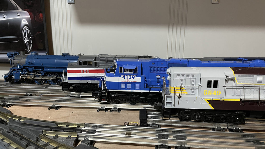 Maybe because the image of my uncle’s Lionel Super Chief speeding through 027 curves was engraved in my childhood mind, or maybe because EMD’s F and E units in that scheme are simply beautiful, the Santa Fe’s premier passenger train remains my favorite. The example you see at the beginning of this article is part of a newer Lionel A-B set that hauls eight streamliners on my basement layout. It’s a beauty!