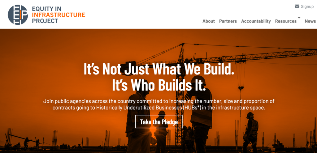 EIP was founded by Denver International Airport CEO Phillip A. Washington (former head of the Los Angeles County Metropolitan Transportation Authority/LACMTA), former U.S. Deputy Secretary of Transportation John D. Porcari and others “in anticipation of the $1.2 trillion Infrastructure Investment and Jobs Act and to answer President Biden’s call to leverage infrastructure spending to build wealth in underserved communities.”
