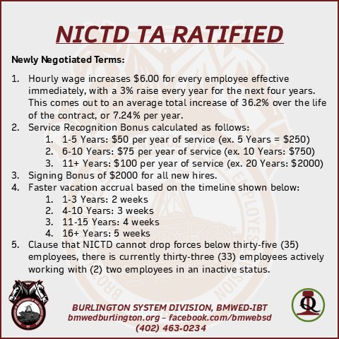 “This is a huge victory for our NICTD brothers; we celebrate with them today and hope that this contract and negotiation timeline will set an example for others in the industry,” the union stated.