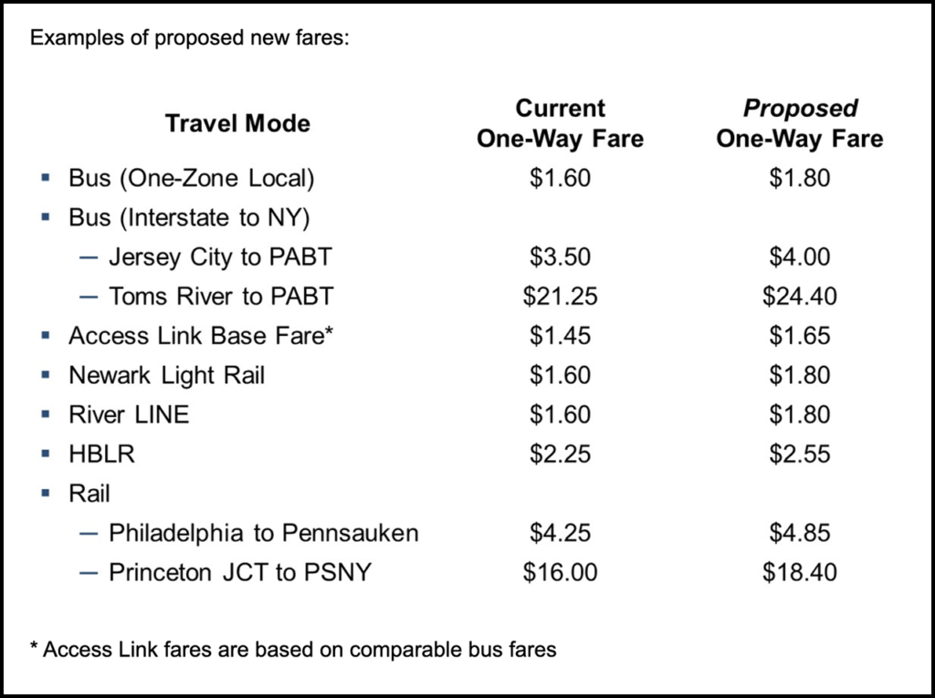 “Since 2015, NJ Transit has held the line on fare increases while not only improving service performance, but adding additional service on more than 100 bus routes and implementing substantial emergency service to support customers abandoned by multiple private bus carriers,” the transit agency said. “In addition, NJ Transit has improved the customer experience through a variety of enhancements since 2018, including fully restoring the ranks of locomotive engineers, delivering a highly rated and completely redesigned NJ Transit Mobile App, introducing new fare payment technologies, and graduating more than 2,300 new bus operators, along with numerous other improvements. NJ Transit has also introduced several improvements for its Access Link paratransit service customers. … And all of this while operating the system with the highest standards of safety and security, including meeting the federal requirements for Positive Train Control in 2020 and expanding the presence of New Jersey Transit Police Department officers throughout the system.”