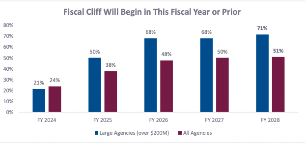 - Most of those agencies that anticipate a Fiscal Cliff stated that the Fiscal Cliff would begin to hit in FY 2024 or FY 2025.