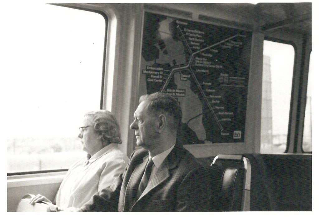 In one photograph from the day – the opening of BART was something you’d be sure to bring a camera to – a bite-sized Franklin can be seen holding his mother’s hand on the platform, smiling as his grandparents look on. In another black-and-white image, Franklin peers into the Train Operator’s cab, his tiny hands on the glass.