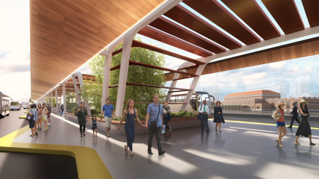 • Capitol Corridor Joint Powers Authority (CCJPA) and partners, the city of Sacramento, Sacramento Regional Transit (SacRT), Downtown Railyard Ventures and Sacramento Area Council of Governments (SACOG): Awarded $49.9 million for the Sacramento Valley Station (SVS) Transit Center: Priority Projects (see rendering above, courtesy of CCJPA). The projects are slated to improve connectivity between modes at the Sacramento Valley Station, as well as redesign commuter and intercity bus service to the SVS and downtown Sacramento to boost train and bus ridership. Among the projects’ components: design of a new bus mobility center to facilitate transfers between modes; realignment of existing light rail tracks into a loop with a new north-south-oriented platform just south of the Steve Cohn Passageway entrance as well as a new double-track alignment from the new platform to the intersection of F Street and 6th Street; construction of a new cycle track on H Street to improve access to the station; and construction of a new pick-up and drop-off loop. Also supported: the consolidation of downtown regional bus routes; and the purchase and installation of contactless EMV readers coordinated with the California Integrated Travel Project on rail and bus vehicles. Total project budget: $95.1 million.