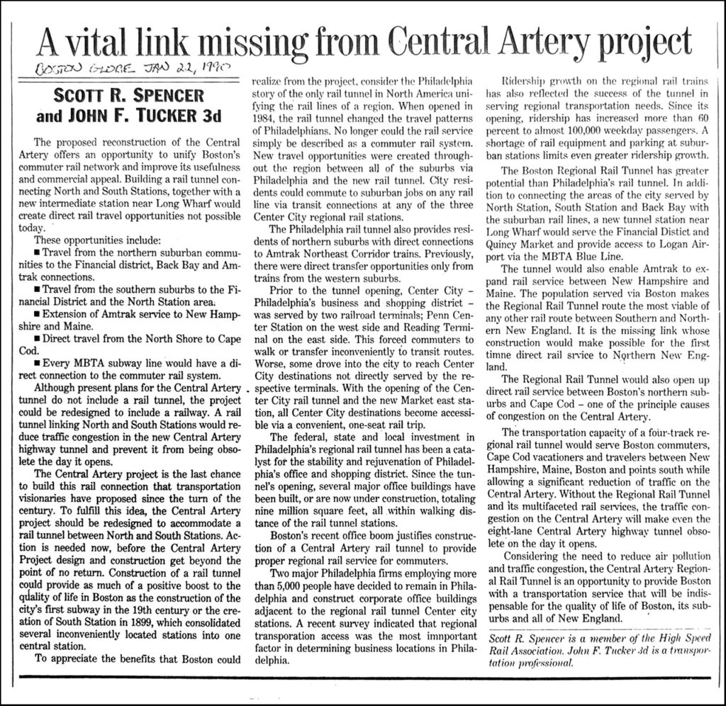 So many Bostonians and, especially advocates for better rail service in the region, were aggrieved by the situation that money would be spent on a tunnel megaproject, while transit riders would receive no benefit. They did not give up, and there were more proposals for a North-South Rail Link, but none have gotten anywhere yet.