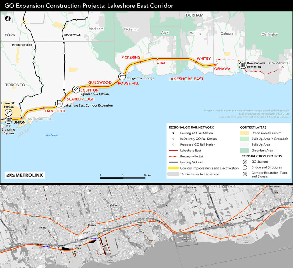 Metrolinx said it continues to advance discussions with third parties to deliver the four GO stations proposed for Thornton’s Corners East, Ritson Road, Courtice and Bowmanville through the Transit Oriented Communities (TOC) program along the Bowmanville Extension. The TOC program “seeks to leverage the value of Metrolinx’s transit network and service to have third parties fund the design and construction of new GO station infrastructure for Metrolinx to own and operate.”