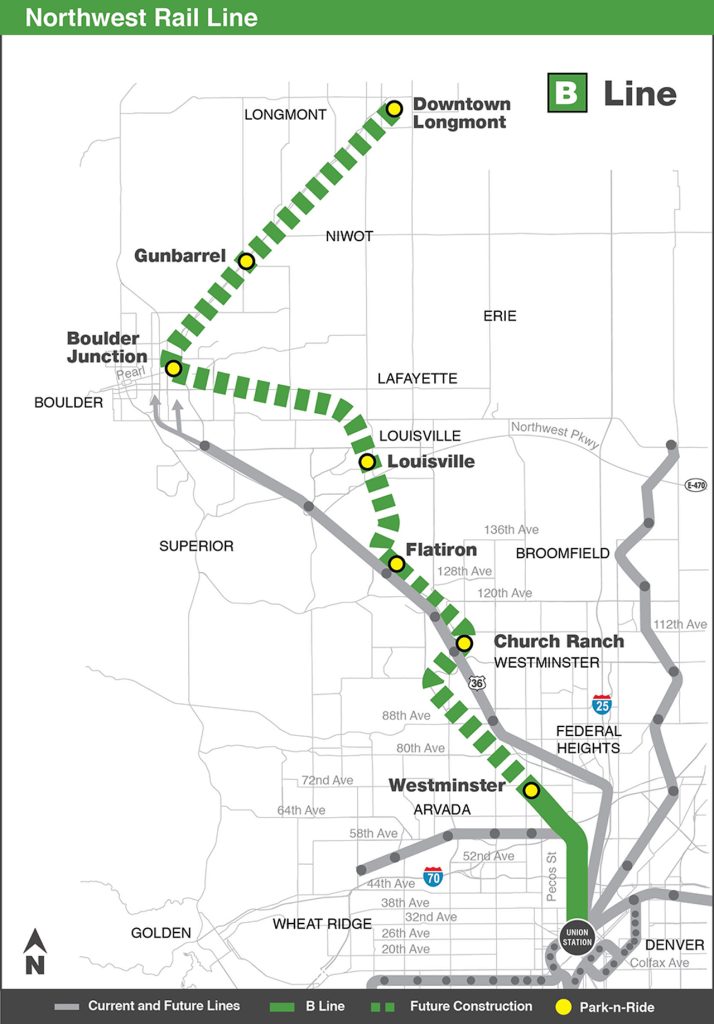 The aim of the study is to “provide updated engineering and cost estimates to determine recommendations for service to northwestern metropolitan communities,” RTD said. “Additional goals include positioning the project for the possibility of federal funding; planning peak service to allow for future build-out of the Northwest Rail Line; and aligning RTD strategically with the agency’s stated goals of partnering with agencies such as the Front Range Passenger Rail Service and the Colorado Department of Transportation.”