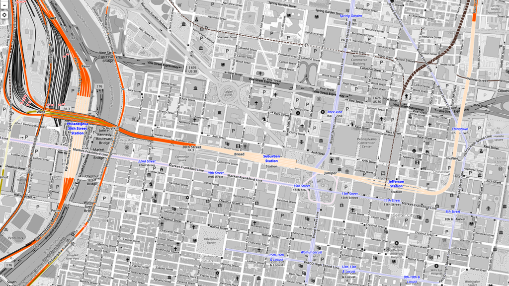 When all is said and done, the greatest change caused by the CCCC and the through-running operation that it enabled might be the new look that it brought to Market Street and JFK Boulevard, rather than any direct result from the through-routing. Ujifusa described how demolishing the “Chinese Wall” made room for light, air and new development along the two streets west of 12th Street. Mid-20th-century-style high-rise buildings have been replaced with new office space that was convenient for commuters. The “glass box” style of skyscrapers (by Philadelphia’s standards, if not by Midtown New York’s) is not considered as aesthetically appealing today as it was then. Ujifusa concluded his article by saying: “An irony is that the cursed ‘Chinese Wall’ might have saved many of historic houses and office buildings along the old commercial corridors of Chestnut and Walnut Streets. Because these high-rises were built on land long occupied by the viaduct, fewer historic structures had to be sacrificed to construct them than if they were built south of Market.”