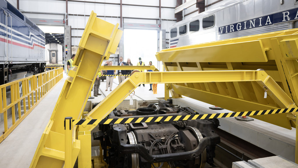The 33,000-square-foot facility features a drop table to remove locomotive and railcar trucks and wheelsets; wheel truing machine to reprofile rolling stock wheelsets; overhead bridge crane with two lift points (one with a five-ton and the other with a 30-ton capacity); and two tracks, each holding up to four locomotives or railcars. VRE, which announced LOU’s official opening on June 29, connects central and northern Virginia with the District of Columbia; its two lines, Manassas and Fredericksburg, serve 19 stations.