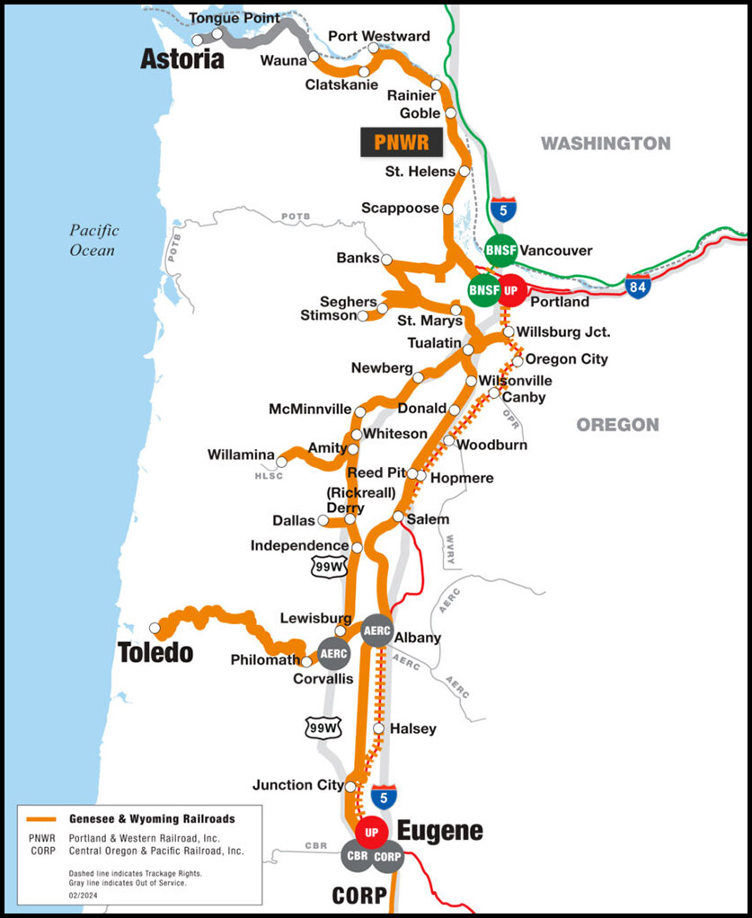 Portland & Western Railroad Map (Courtesy Genesee & Wyoming)