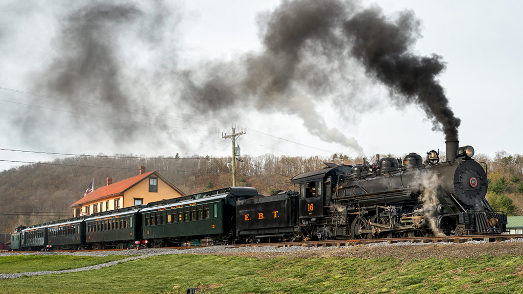 “The East Broad Top experience is rooted in the railroad’s one-hour round trip scenic train excursions, rolling over a portion of the EBT’s historic main line through Central Pennsylvania’s rolling hills, pastoral farmland, and thick forest,” the railroad notes. “Most of the scheduled departures are pulled by one of the railroad’s iconic locomotives. In addition to the scenic rides, the EBT offers visitors the opportunity to experience the railroad’s historic shop complex, which provides a trip back in time that is unmatched anywhere else in the U.S. Regular guided tours are offered frequently on most days that trains are operating and take visitors through the Roundhouse (where steam engines are stored) and the railroad’s unique belt-driven machine shop, which is the largest and most intact of its kind in the country.”