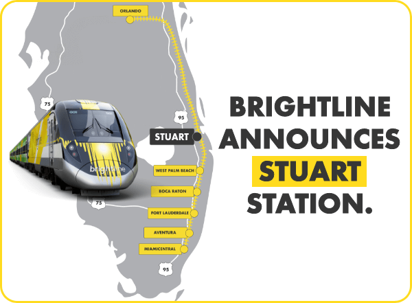 In a statement issued at Stuart, Brightline said: “Brightline, seamlessly connecting travelers between Central and South Florida, formally announced today that it has selected Martin County and the City of Stuart as the site for its next intercity passenger rail station. The location was chosen after a review of five proposals from private and public landowners along the Brightline/Florida East Coast Railway (FEC) corridor in Martin and St. Lucie counties.” Brightline did not disclose any information about other contestants in its statement, but we have learned that there were two bids from Fort Pierce.