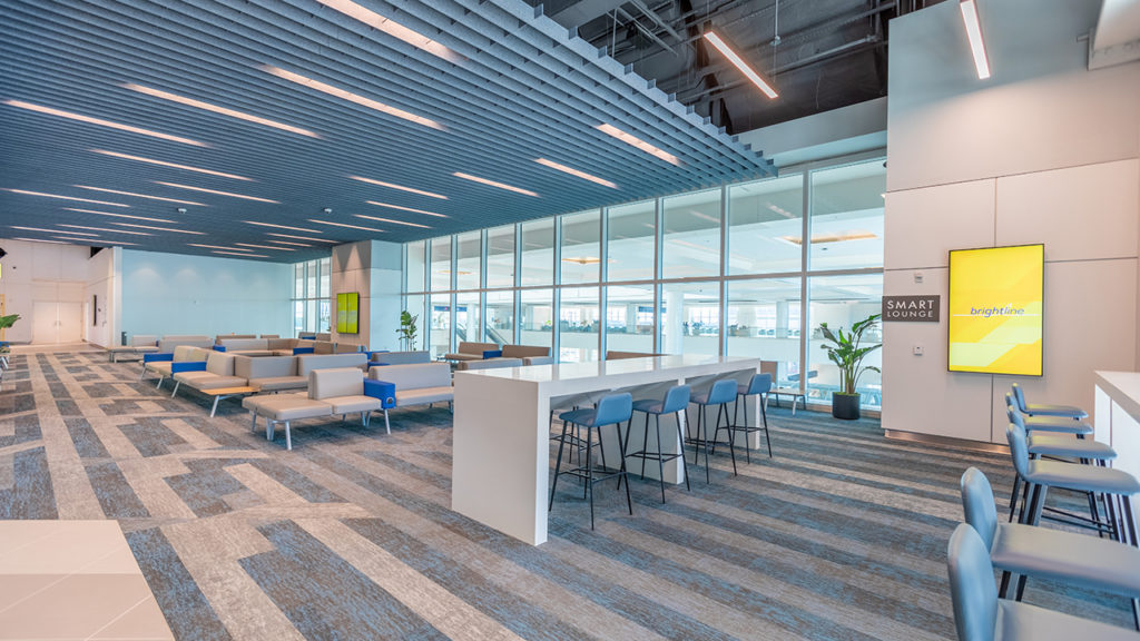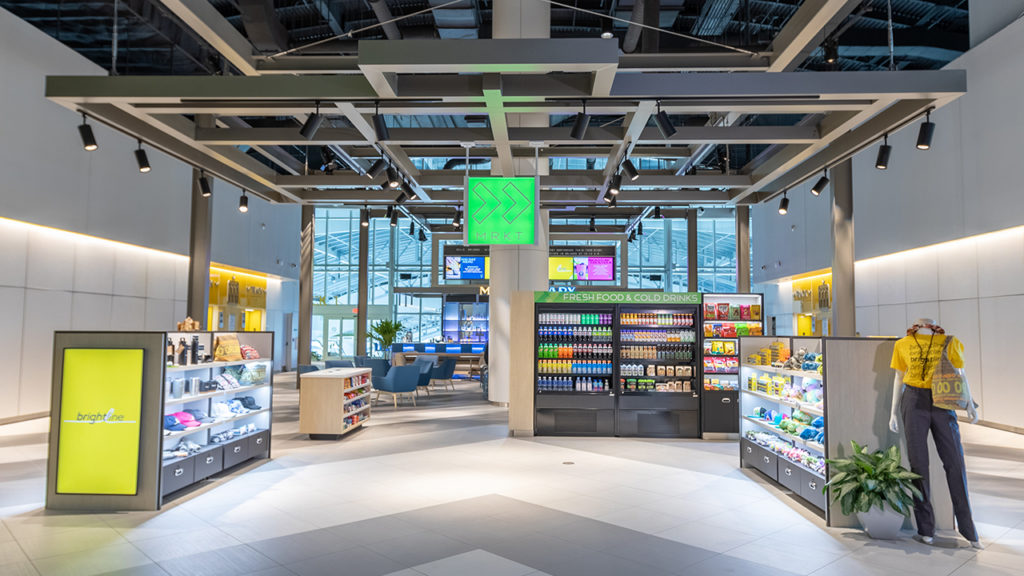 Brightline also described the station’s amenities: “The guest journey begins at the main entrance, located off the airport’s expansive two-story glass atrium. Once inside the station, passengers can purchase tickets from guest services or one of several self-service kiosks, and check luggage before proceeding through touchless turnstiles into the security screening tunnel.” There are several amenities, including food service, WiFi, phone charging stations and the like. Also included is “BrightKids, a children’s play area located in the SMART lounge,” a feature that used to be found at fast-food outlets, but not in a train station in this country. Another is described this way: “Above the Mary Mary bar is an iconic, split-flap message board that can rotate alphanumeric text and/or graphics to form a message. A nostalgic nod to historic train stations, the split-flap will provide updated train schedules, boarding times, news of the day and other announcements complete with sounds reminiscent of the first passenger train stations in America.” How similar will that board be to the Solari boards that graced stations along Amtrak’s Northeast Corridor from the 1970s until recently remains to be seen.