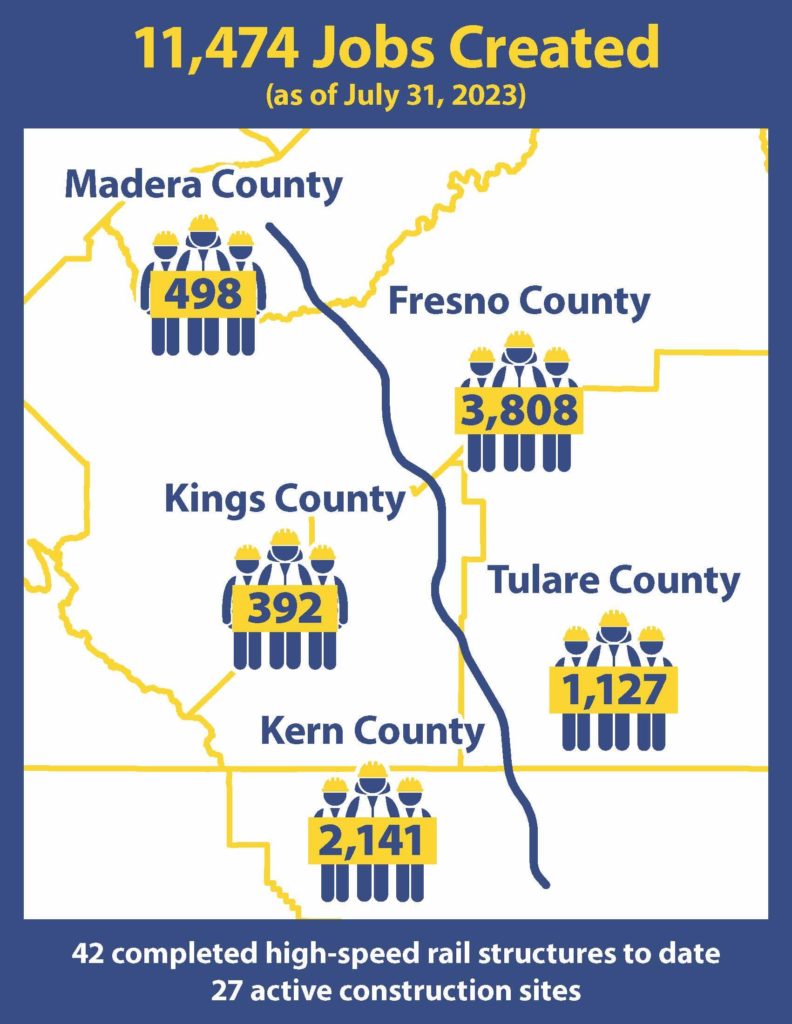 “Since the Community Benefits Agreement, this project has created more than 11,000 well-paying construction jobs in the Central Valley, with more than 70% of the workers residing in the Central Valley,” said CHSRA CEO Brian Kelly. “Moreover, we worked closely with the Fresno Economic Development Corporation and the trades to expand workforce training to the men and women of the Central Valley looking to work in the construction industry.”