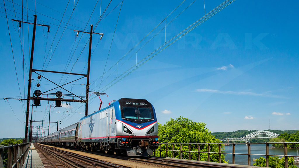 Northbound ACS-64-hauled Amtrak Northeast Regional train crossing the Susquehanna River Rail Bridge in 2014. Courtesy of © Amtrak|Chuck Gomez.