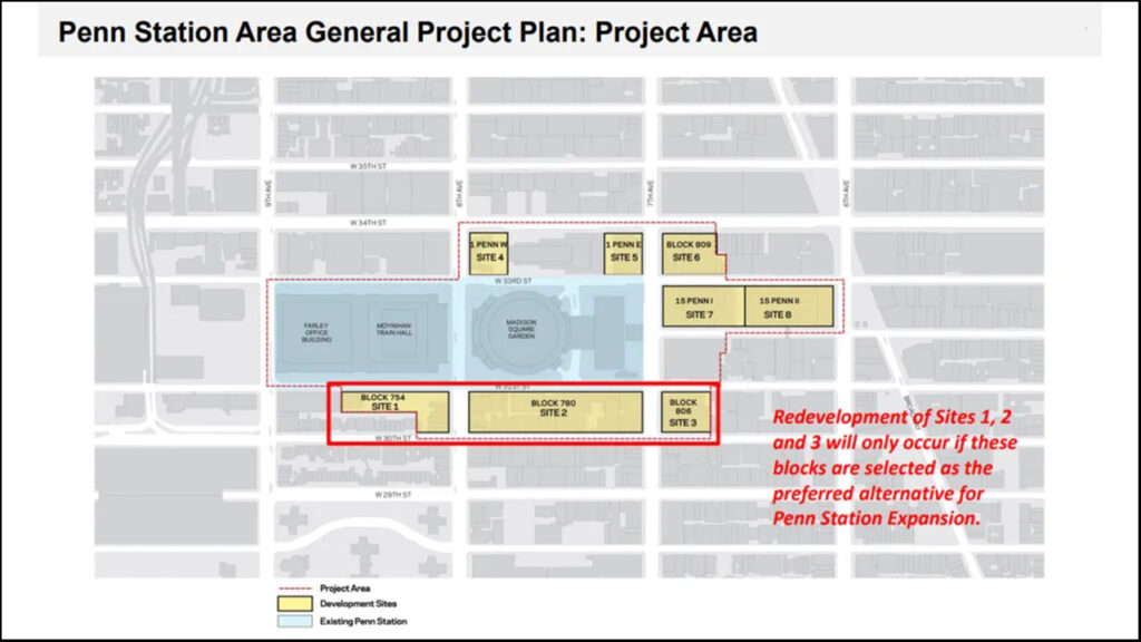 The Midtown South Community Council reported that the City Club of New York endorsed Hochul’s call for saving the block: “The City Club of New York strongly endorses Governor Kathy Hochul’s decision to reject the demolition of Block 780—the block immediately south of Penn Station bounded by 30th and 31st Streets and Seventh and Eighth Avenues—for station expansion. This decisive step preserves a historic neighborhood, shifts the transit conversation toward operational efficiency, and challenges transportation leaders to reimagine rail capacity without unnecessary demolition … Preservation of Block 780 necessitates a complete reevaluation of the existing General Project Plan (GPP). The City Club calls for an independent, transparent assessment within the next six months, bringing together community stakeholders, transportation advocates, urban planners, and international transit experts. This assessment must include rigorous analysis of successful through-running models in comparable global cities, such as Philadelphia’s Center City Commuter Connection, London’s Thameslink and Paris RER.”