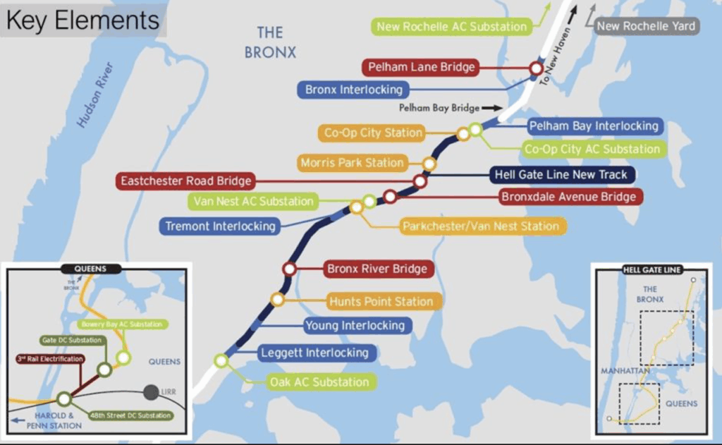 The project is slated to extend MTA Metro-North Railroad‘s New Haven Line to Penn Station, creating four new accessible stations in the Bronx, improving existing tracks and bridges, and cutting travel times from the Bronx to Manhattan by as much as 50 minutes.