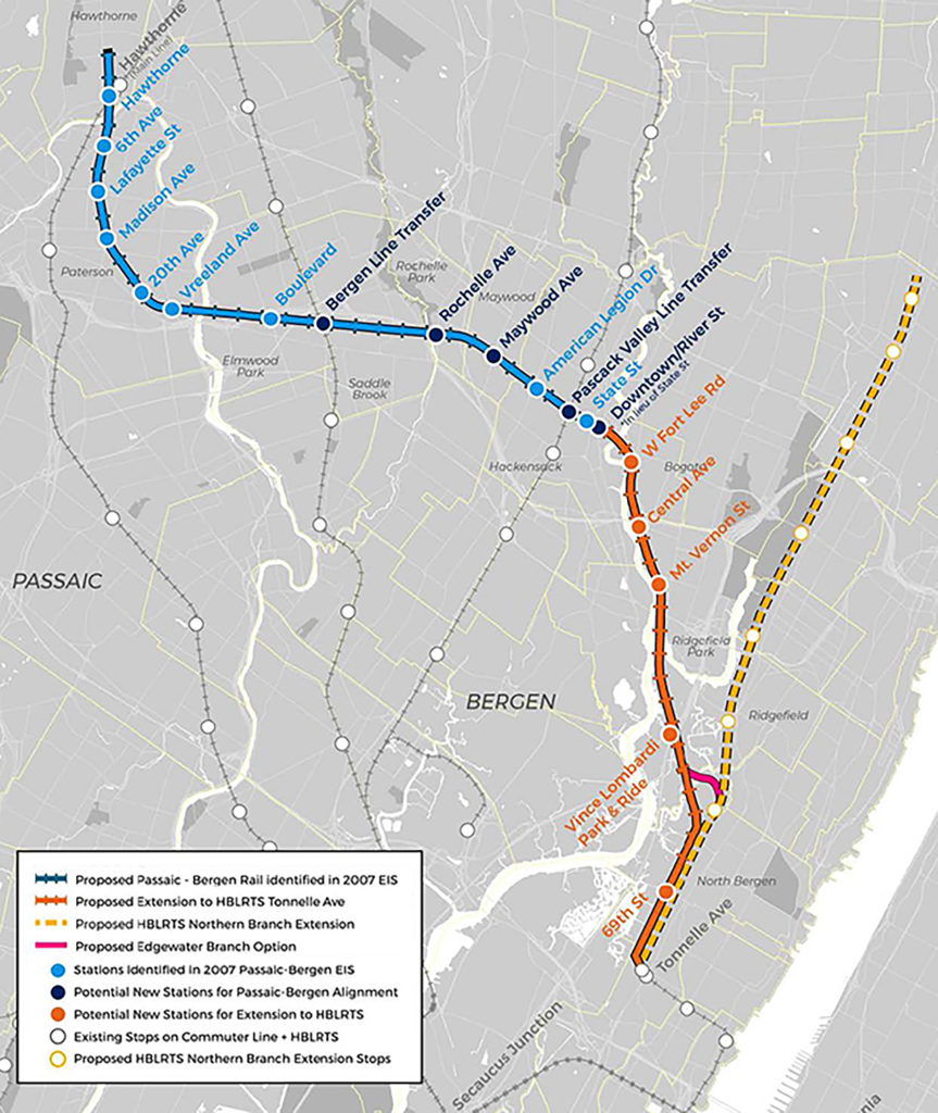 Now, the plans and construction timelines for the HBLR extension into Bergen County will need to be redone. NJ Transit spokesman Jim Smith told Northjersey.com the agency has directed its consultant, Jacobs Engineering, to begin “immediately developing a new scope of work and updated construction and completion timelines” for the HBLR extension into Bergen County. “Fortunately, much of the information in the original SDEIS (Supplemental Draft Environmental Impact Statement) is still relevant and can be used as a starting point in a new EIS process,“ he said. ”The process, which should take about 24 months once started, will reevaluate existing conditions, including flood plain and resiliency mitigation, project alignment and public engagement. While that timeline estimate is very preliminary at this point in the process, we continue exploring all potential avenues, including constructing the extension in phases, while identifying funding options such as the Infrastructure Investment and Jobs Act of 2021 to advance this critical project.”