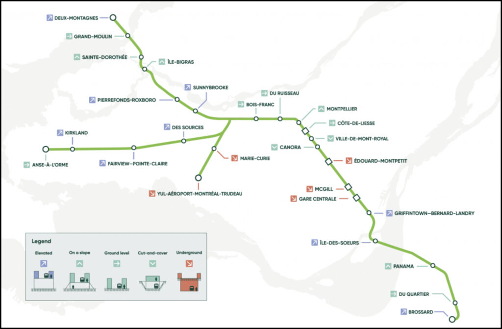 When the segments to Anse-à-l’Orme and to Montréal-Trudeau International Airport open in spring 2026 and 2027, respectively, the system will have 26 stations, span 41.6 miles (67 kilometers), and accommodate up to 170,000 riders.