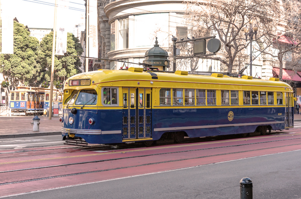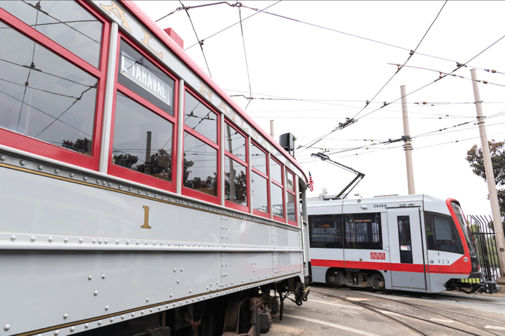 While the colors today fit right in with the modern era, they harken back to the original grey and red of Muni’s very first streetcar. (Caption and Photograph Courtesy of Muni)