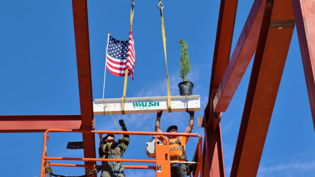 The frame for a new LRV maintenance and storage facility is now in place, according to a May 11 OCTA report. Several staff members from OCTA and contractor The Walsh Group signed the final beam that was then lifted to the top of the building along with an American flag and a tree (a construction tradition) and secured on May 10.