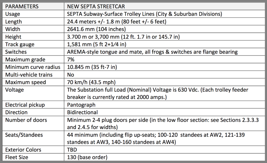 “The new trolleys will be fully accessible to people with disabilities and have higher capacity to move more passengers,” SEPTA reported. “The new fleet will have low floors and ramps; wider pathways; audio and visual messaging systems to communicate upcoming stops and service changes; and designated open space for people with wheelchairs, walkers and strollers.” (See scope below.)