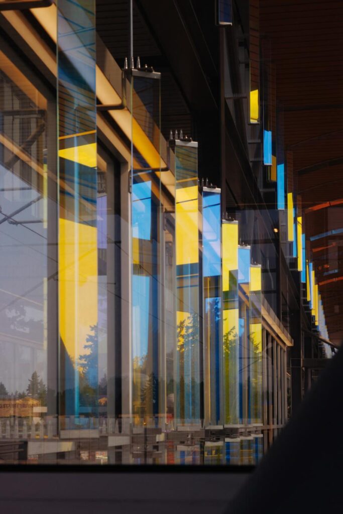 “‘Prismatic’ by Catherine Widgery transforms the Federal Way Downtown Station’s interior into a glowing space of color and reflection, accentuating its height and rhythm while shifting with natural light throughout the day,” according to Sound Transit. (Courtesy of Sound Transit)