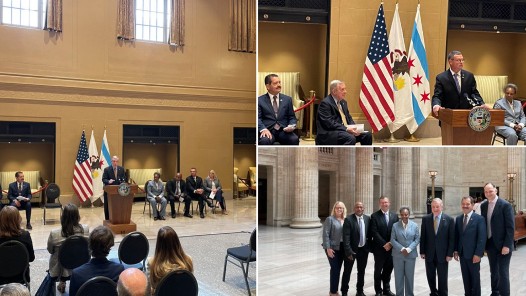 “It was a pleasure joining @RepChuyGarcia, @chicagosmayor, and local transportation leaders to announce a coalition of support for the Chicago Union Station Access Project. The $418M project will enhance the passenger experience and improve rail service throughout our region,” U.S. Senate Majority Whip Dick Durbin (D-Ill.) tweeted on July 7. (Photograph Courtesy of Sen. Durbin via Twitter)