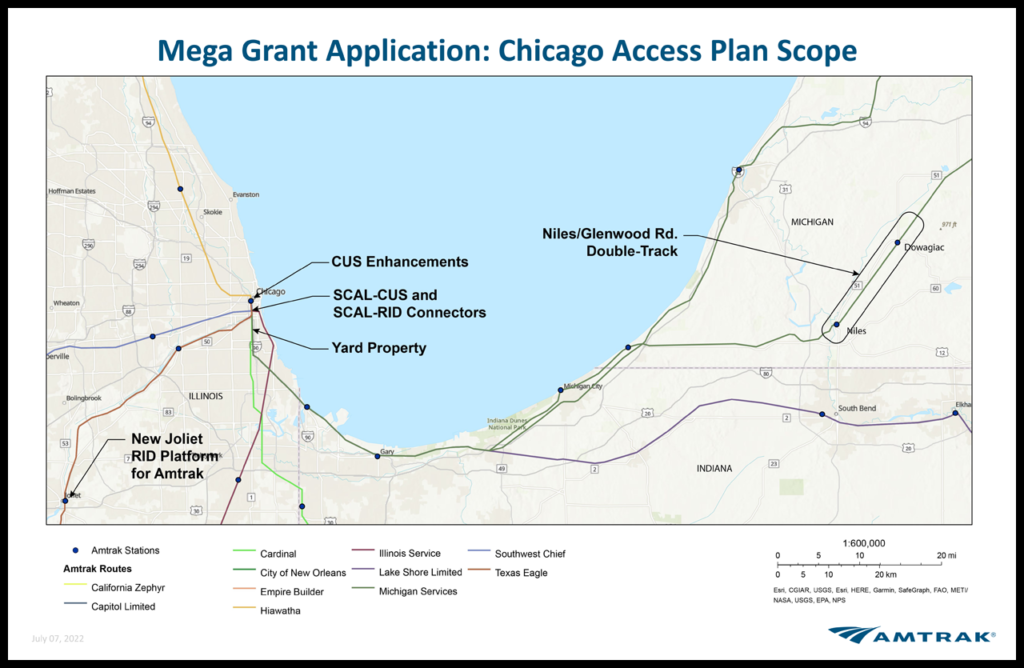 “The Michigan DOT supports Amtrak and our partners in applying for the federal MEGA grant application,” said Michigan State Transportation Director Paul C. Ajegba. “Improvements to Chicago Union Station and the final design of double tracking on the Amtrak-owned line from Niles through and beyond Dowagiac, Mich., will be a huge benefit for rail travelers.”