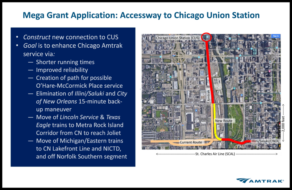 • Create a new way for passenger trains to access the station from the south, which is slated to improve on-time performance for both Amtrak and Metra trains.