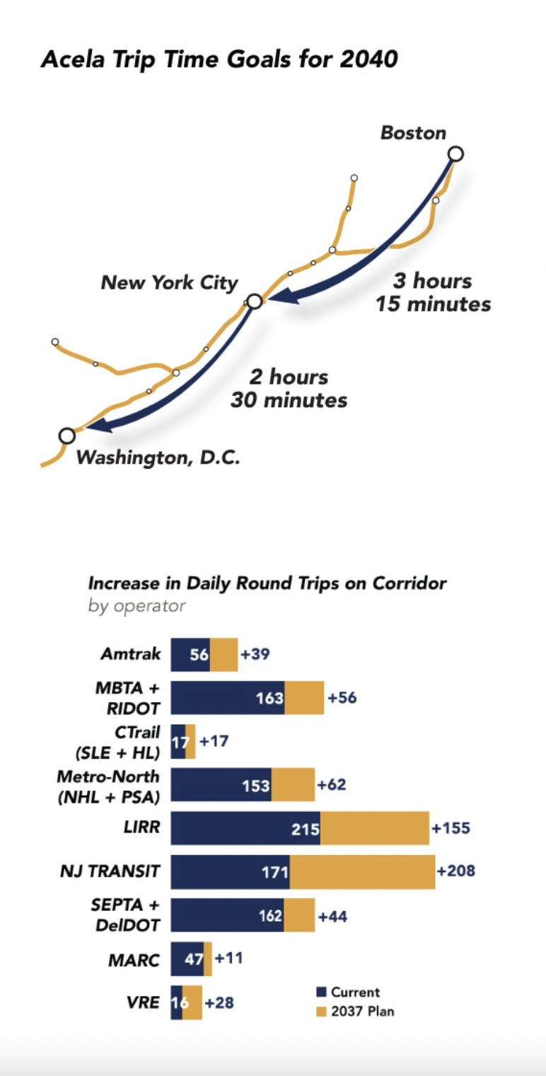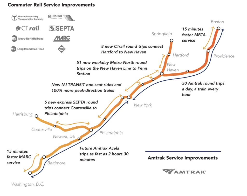 —50% more Amtrak trains between Boston and New York.
