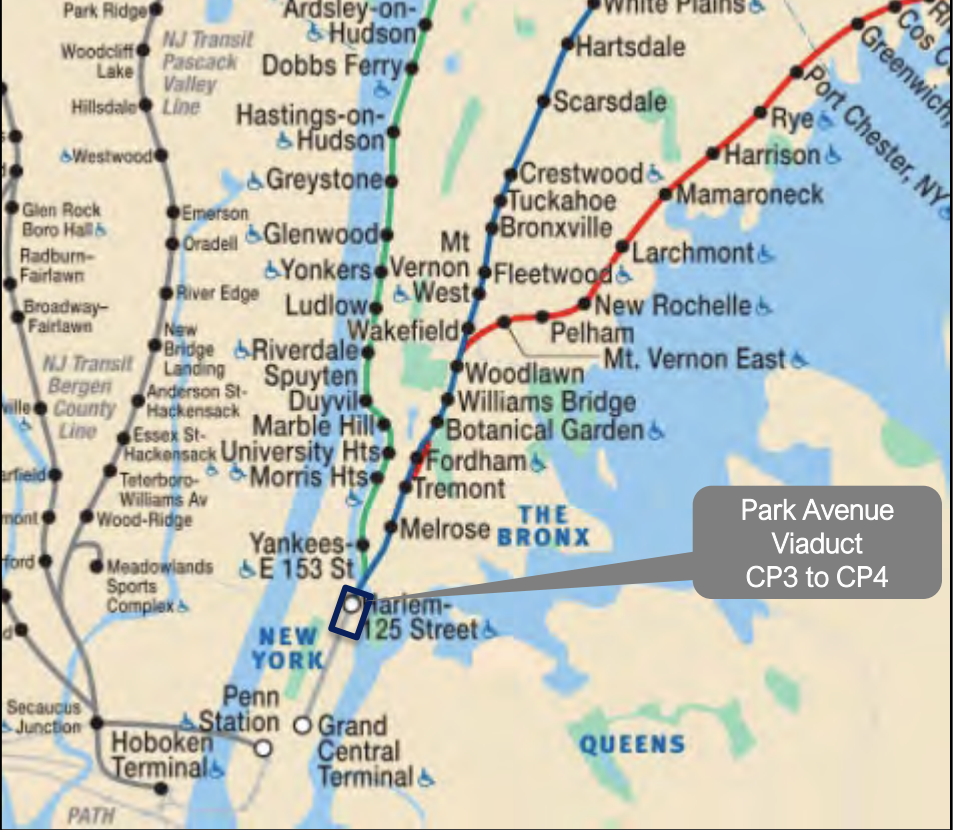 The contract, which will be awarded following MTA Board approval, represents the first phase of a long-term project. According to the agency, all Metro-North Railroad trains traveling along the Hudson, Harlem and New Haven lines must utilize the Park Avenue Viaduct to access Grand Central Terminal, totaling 98% of all Metro-North trains. The mile and a quarter stretch encompasses four Metro-North tracks between 110th Street and the Harlem River Lift Bridge.