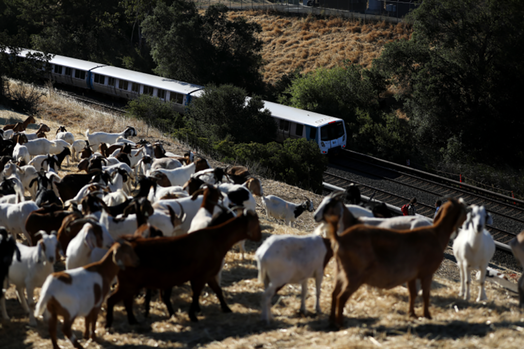 Editor’s Note: In another rather offbeat story, Bay Area Rapid Transit employs goats for brush cutting and “lawn maintenance” on some portions of its right-of-way prone to trackside fire. We thought this rather innovative use of natural resources would grab your attention, not get your goat. — William C. Vantuono