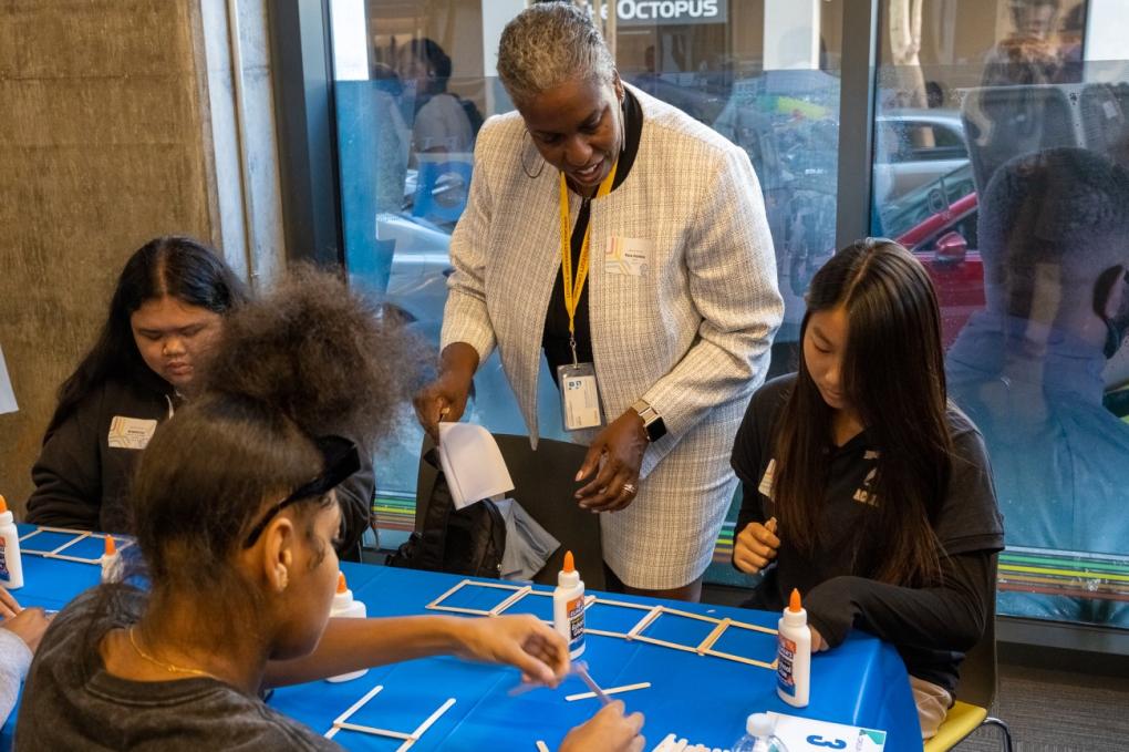 At the end of the discussion, the young women engaged in a team STEM bridge-building activity with popsicle sticks that put their science, technology, engineering, and math skills to the test.