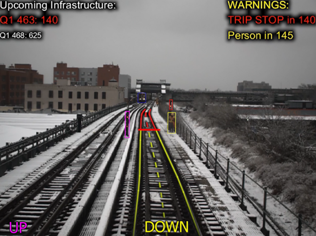 4AI Systems, in partnership with MAC Products, demonstrated how its AI software can improve reliability and safety through early track intrusion detection. Five cameras and sensors were installed on an R143 subway car and captured 5,000 miles of footage and 50 TB (terabytes) of data along the Canarsie Line (L), NYCT’s first CBTC-equipped line. People, objects, and signal colors were detected up to 1,600 feet away. “This solution can also help lower maintenance costs by replacing old wayside infrastructure,” Transit Tech Lab noted.