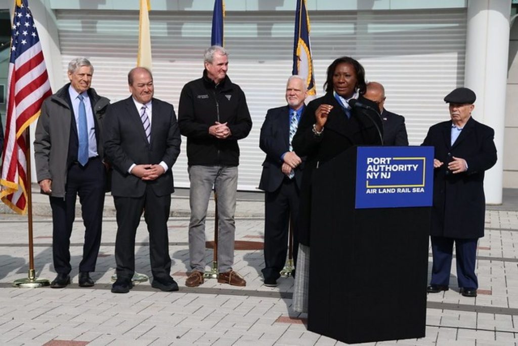 Gov. Murphy joined Port Authority officials, including PATH General Manager Clarelle DeGraffe (at podium), to mark the start of 9-car PATH service at peak hours. (PANYNJ)